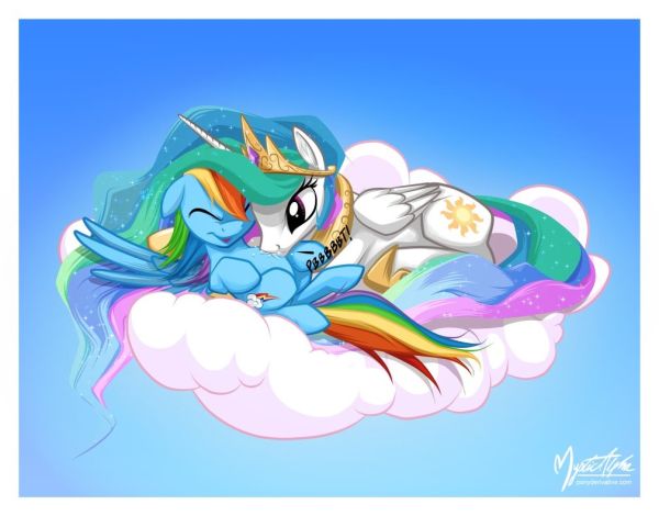 Tags: rainbow dash princess celestia cloud raspberries mysticalpha